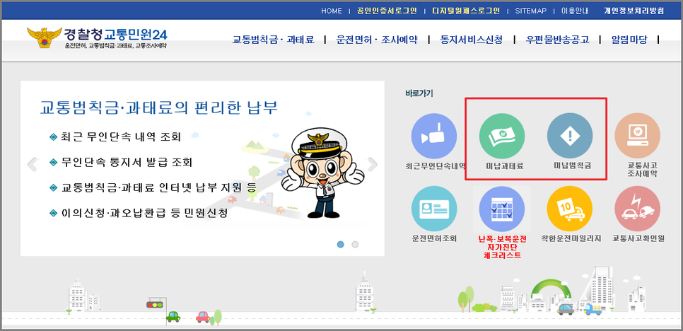 미납 과태료/범칙금 조회 후 납부할 수 있습니다.