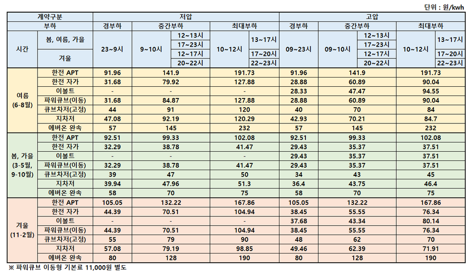 여름 새벽 시간대의 요금이 가장 저렴합니다.