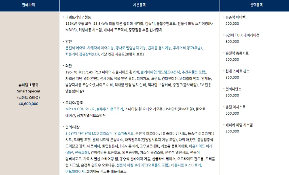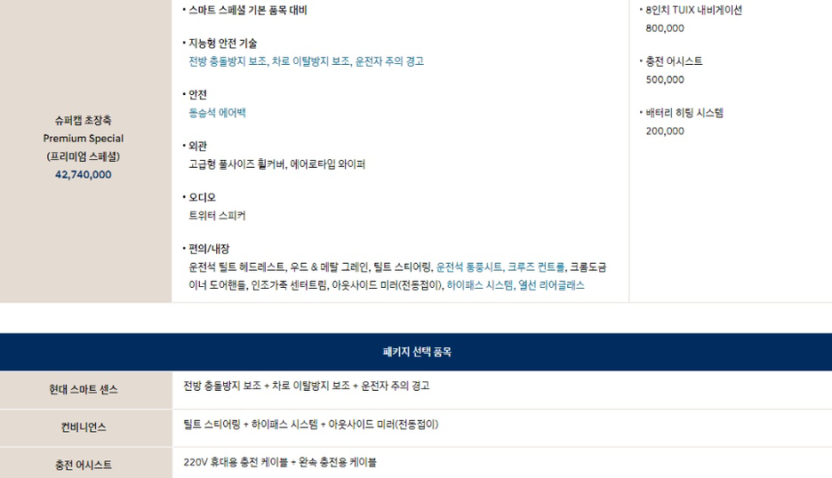 혹한기와 화물 적재 상황에서의 실제 주행거리가 구매에 많은 영향을 끼칠 것으로 생각됩니다.