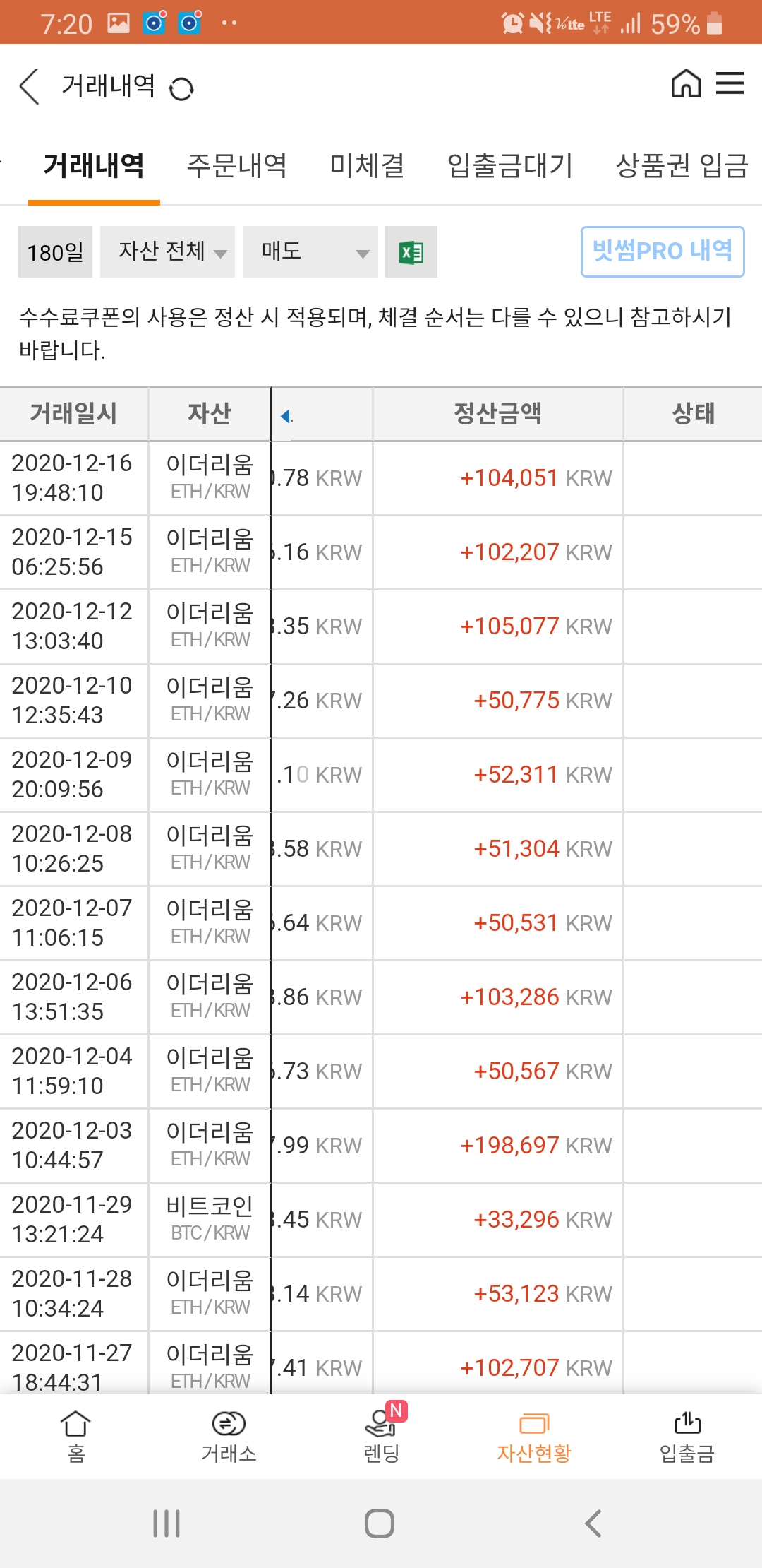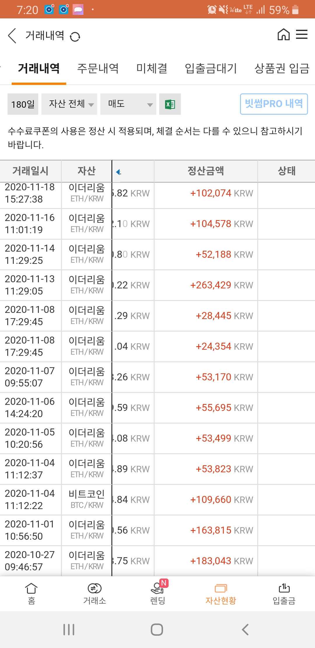채굴한 코인은 매일매일 매도할 수 있습니다.