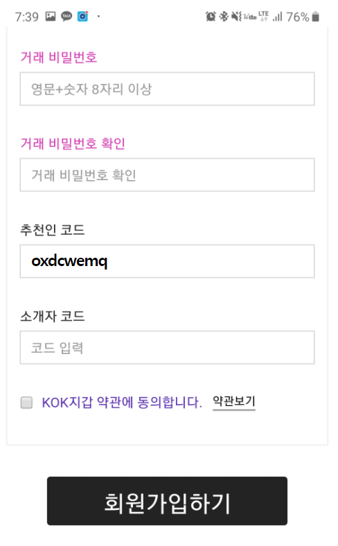 → 추천인코드가 가장 중요합니다. 입력되어있는 값을 확인 후 진행합니다.