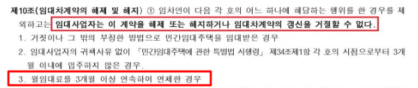 다만 주택임대사업자로서 '표준임대차계약'을 진행했다면 3번 이상의 월세를 연체했을 경우 계약 해지를 통보합니다.