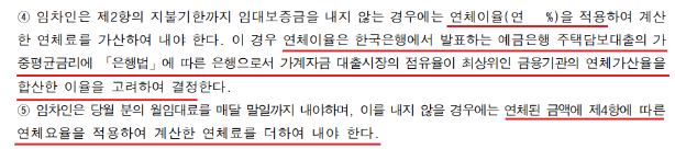 예를 들어 민간임대주택 임대차 계약에서 사용하는 '표준임대차계약서'에는 연체이율에 대한 항목이 따로 명시되어 있습니다.